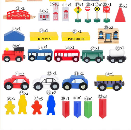 et de Train en Bois 78 Pièces – Voitures à Contrôle Manuel et Rails Éducatifs