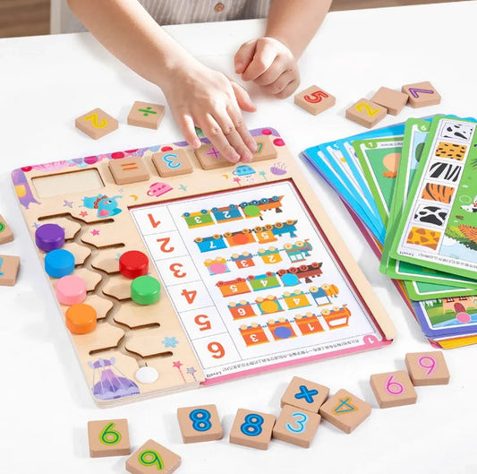 Jeu Éducatif en Bois – Apprentissage des Chiffres, Couleurs et Formes