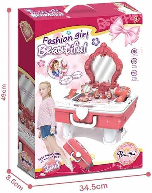 Coiffeuse portable pour enfants avec miroir et valise à roulettes