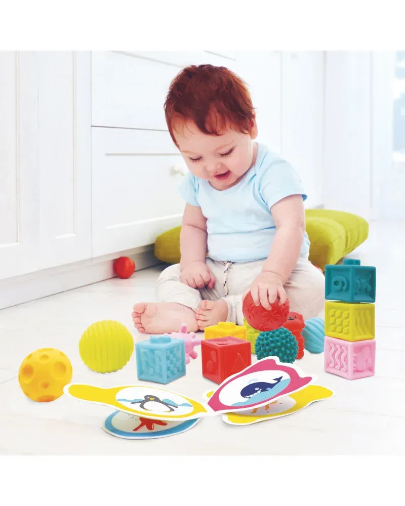 • Contient : 6 cubes, 6 balles sensorielles, 2 aspergeurs, 1 livre de bain