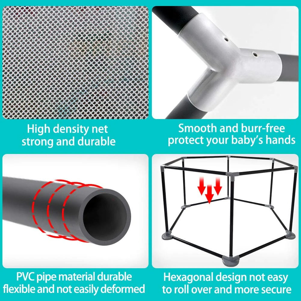 Offrez à votre bébé un espace de jeu sûr, confortable et stimulant avec ce parc à balles hexagonal doté d’un coussin double couche antidérapant. Conçu pour accompagner les tout-petits dès 6 mois, il combine sécurité, éveil et amusement.